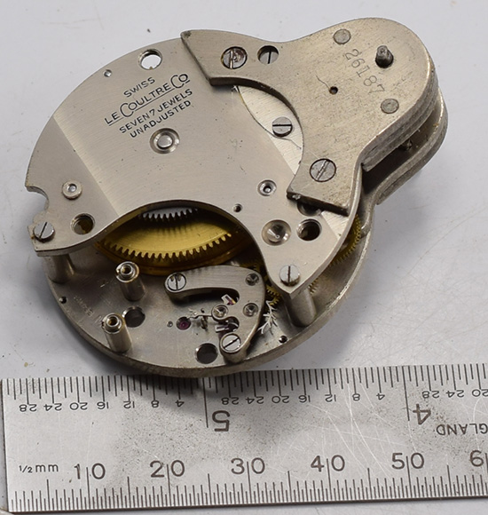 LeCoultre partial aircraft clock movement. Missing balance cock and wheel. | $25.00 |
