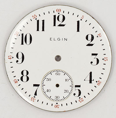 Elgin 16-size double sunk (center is just pressed ina) dial. Dial feet at 19.2, 36.0, 54.7. | $15.00 |