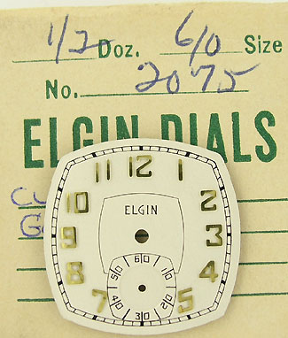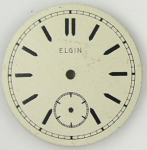 New-old-stock Elgin metal replacement dial. Dial feet at 19.2, 36.0, 54.7. (2 available) | $20.00 |