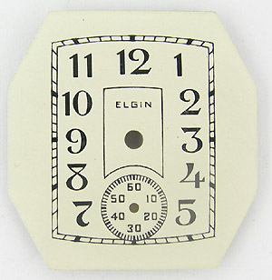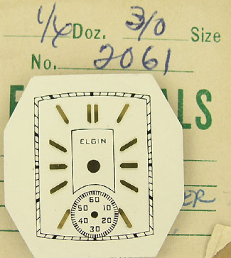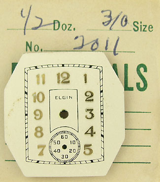 Elgin new-old-stock 3/0s (26.6mm wide by 27.3mm high). Raised gold markers. (2 available) | $10.00 |
